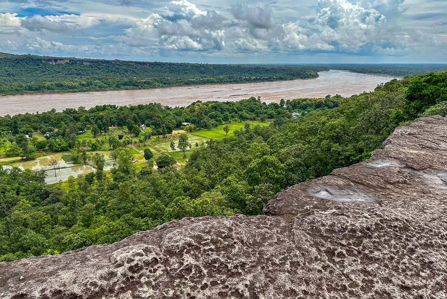 From there it was a half hour drive to my next stop in the Pha Taem National Park. This national park – the most easterly one in Thailand – is known for its prehistoric cave paintings under the sandstone cliffs overlooking the Mekong. Those cliffs also offer the best views of the Mekong in this part of Thailand. However, there are no guard rails along the top of the cliffs, so caution needs to be exercised when enjoying the spectacular views.